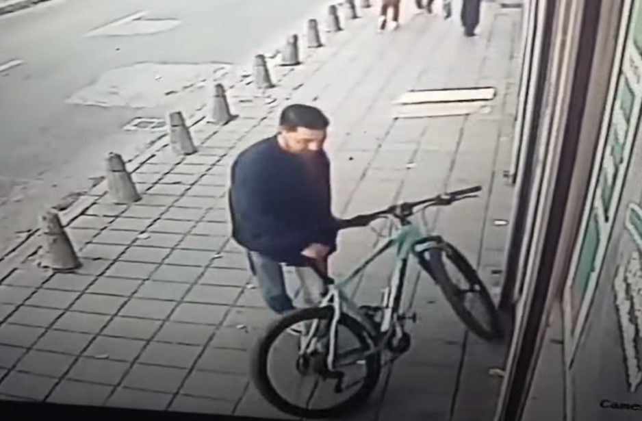 На снимката од безбедносна камера јасно се гледа како непознато лице пристигнува пеш, мирно го зема велосипедот и се оддалечува со него во непознат правец.