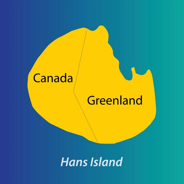 Островот Ханс се наоѓа на половина пат помеѓу Гренланд и канадскиот остров Елесмер, а „војната“ што се водела околу него не вклучувала оружје, туку само знамиња и шишиња со добро виски и ракија!