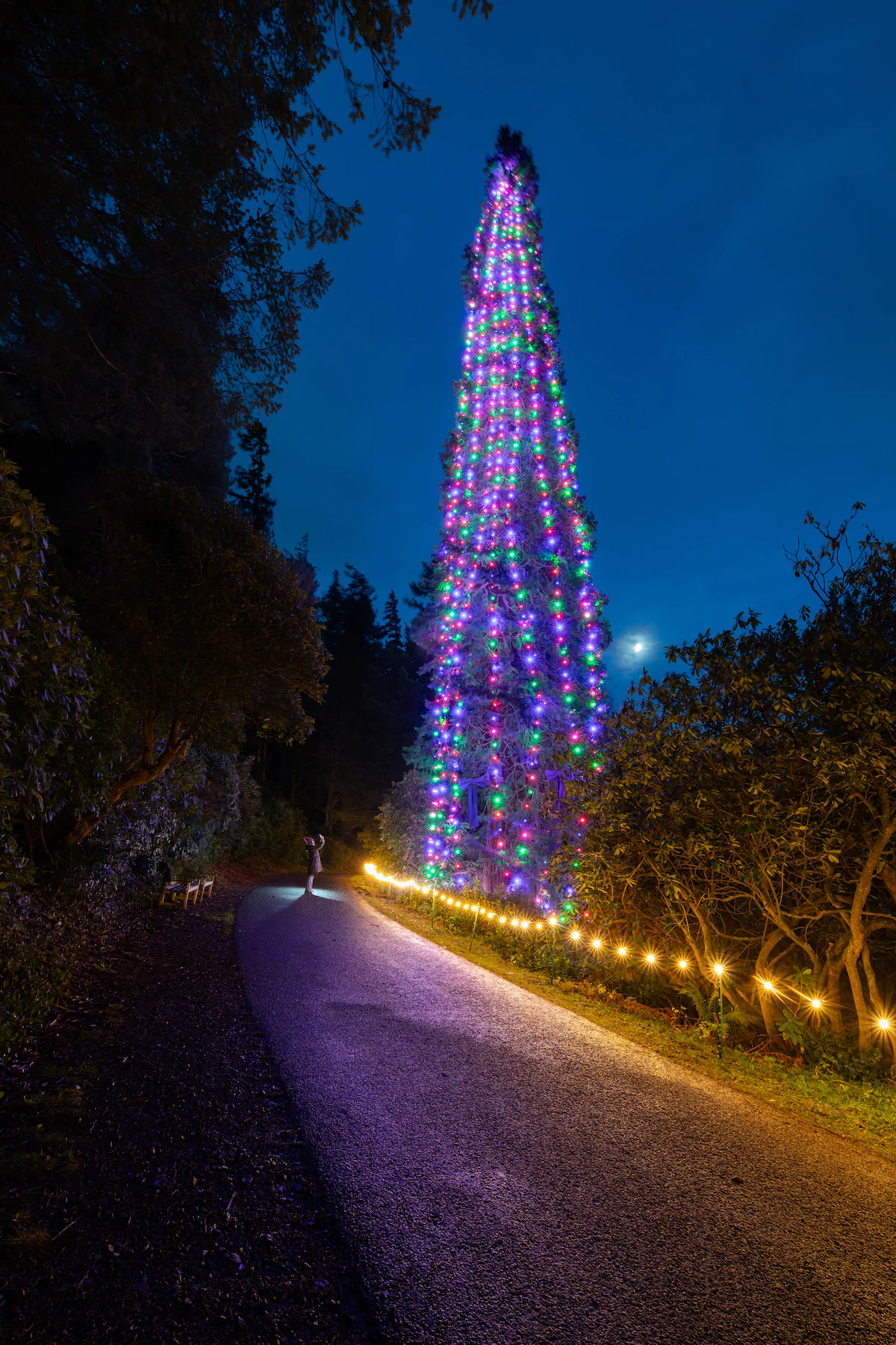 Светлата биле поставени вертикално, наместо да бидат обвиткани околу елката, за да се избегне оштетување и во согласност со историската практика од викторијанската ера. Елката свети само неколку часа на ден, со цел заштеда на енергија и намалување на влијанието врз животинскиот свет.
