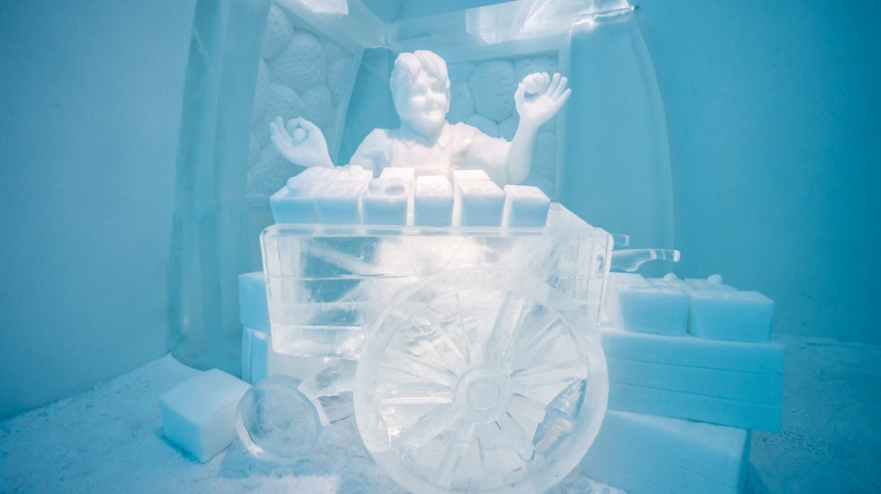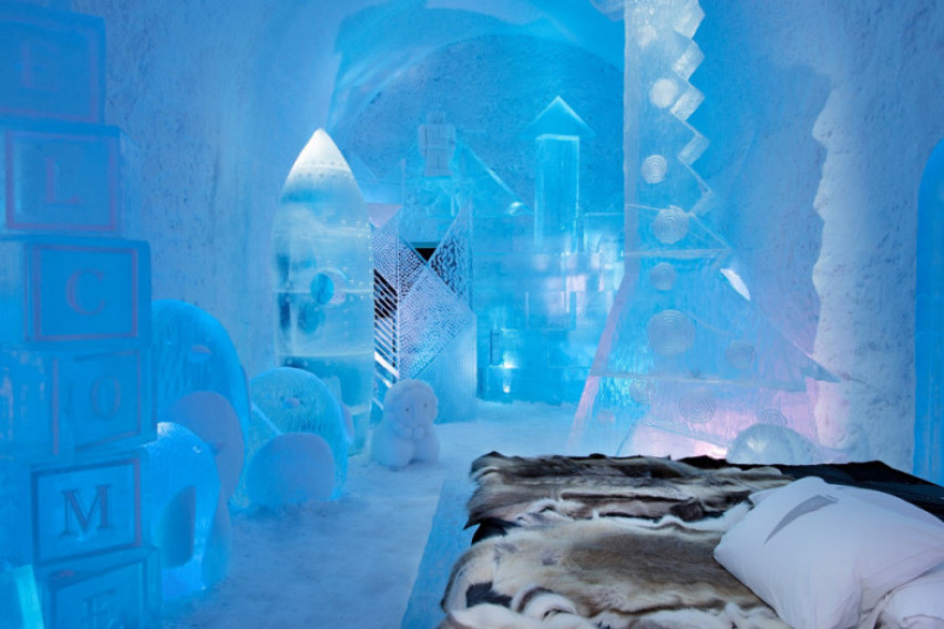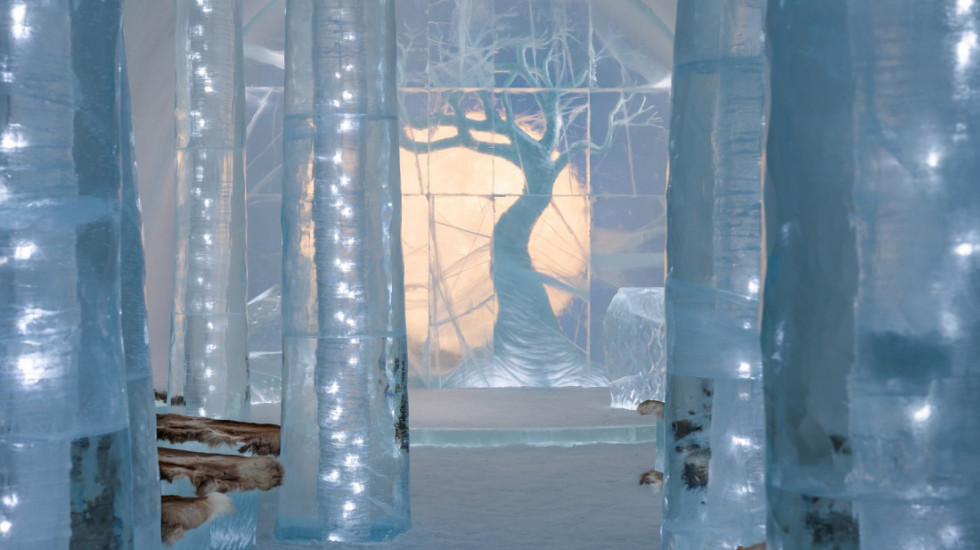 Во хотелот „ICEHOTEL 36“ во северна Шведска има 12 апартмани, секој изграден според свој концепт. Собите оваа година вклучуваат една со замрзната библиотека врежана во ѕидовите и друга каде што исклесани сфери изгледаат како да лебдат над креветот.