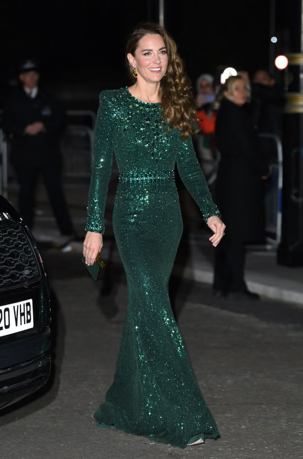 Фигурата ја прикажува Кејт Мидлтон во елегантна тоалета на модната дизајнерка Џени Паком, инспирирана од изданието што го носеше во 2021 година на настанот „Royal Variety Performance“ во лондонската „Royal Albert Hall“. Фустанот е верно реконструиран, фризурата е соодветна, но според мислењето на многумина, тука завршува целата сличност.