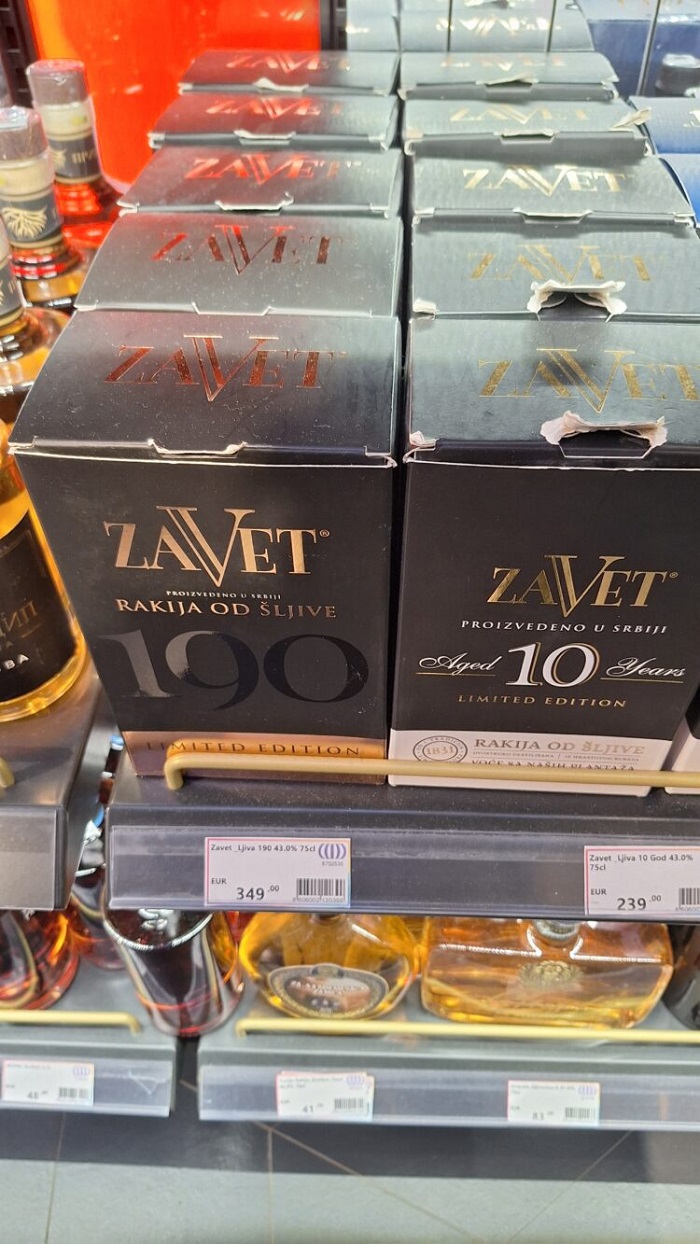 Добро, навикнати сме и водата на аеродромите да биде прескапа – на белградскиот, шишенце од половина литар чини 2,50 евра. Има и луѓе кои сакаат со себе да понесат шише жесток пијалак – веројатно затоа има толку голем избор на ракии и во ценовен опсег од околу 20 евра па сè до 349 евра, колку што чини една од сливи (инаку е 19.900 динари), можеби и повеќе.