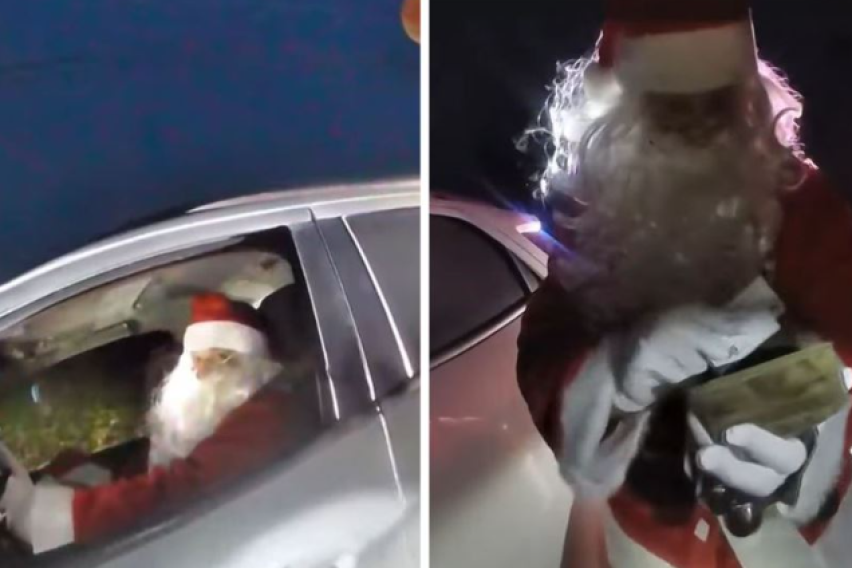 Полицаец од канцеларијата на округот Фултон ѝ пришол на возилото како и при секоја друга рутинска контрола, но не можел да го сокрие воодушевувањето кога на предните седишта го здогледал празнично облечениот пар, што се гледа и на снимката од камерата која полицијата подоцна ја објави на „Facebook“. „Дедо Мраз!“, извикал полицаецот додека со батериската ламба го осветлувал прозорецот на возачот.