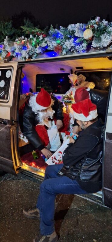 Инаку, низ градот Дедо Мраз може да го забележите со новогодишно украсено комбе, внатре полно со пактчиња.