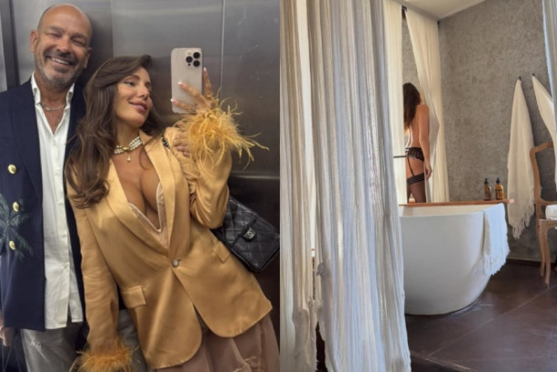 Во објава на социјалните мрежи, двојката стоеше пред дрвја украсени со светилки, прегрнати.