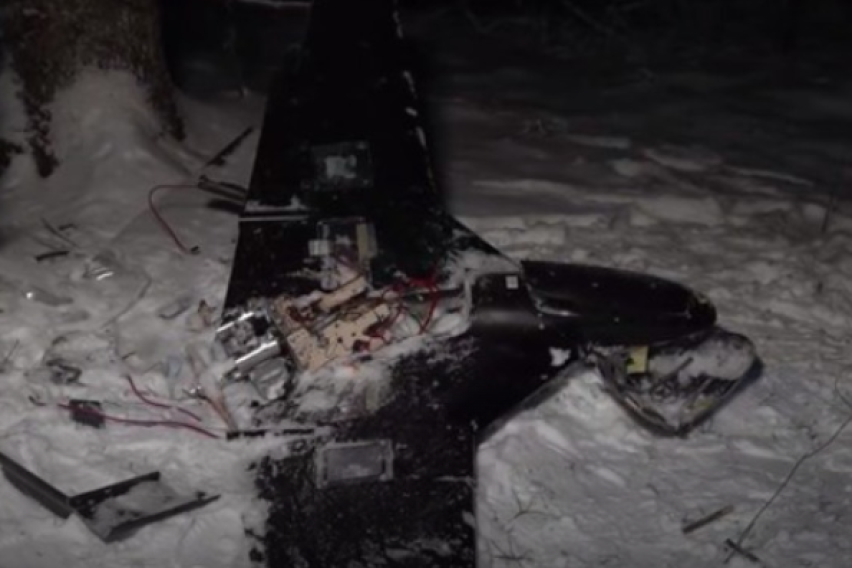 Руското Министерство за одбрана објави видео на кое се гледа војник со покриено лице во близина на остатоците од дронот, тврдејќи дека леталото превезувало шест килограми експлозив.