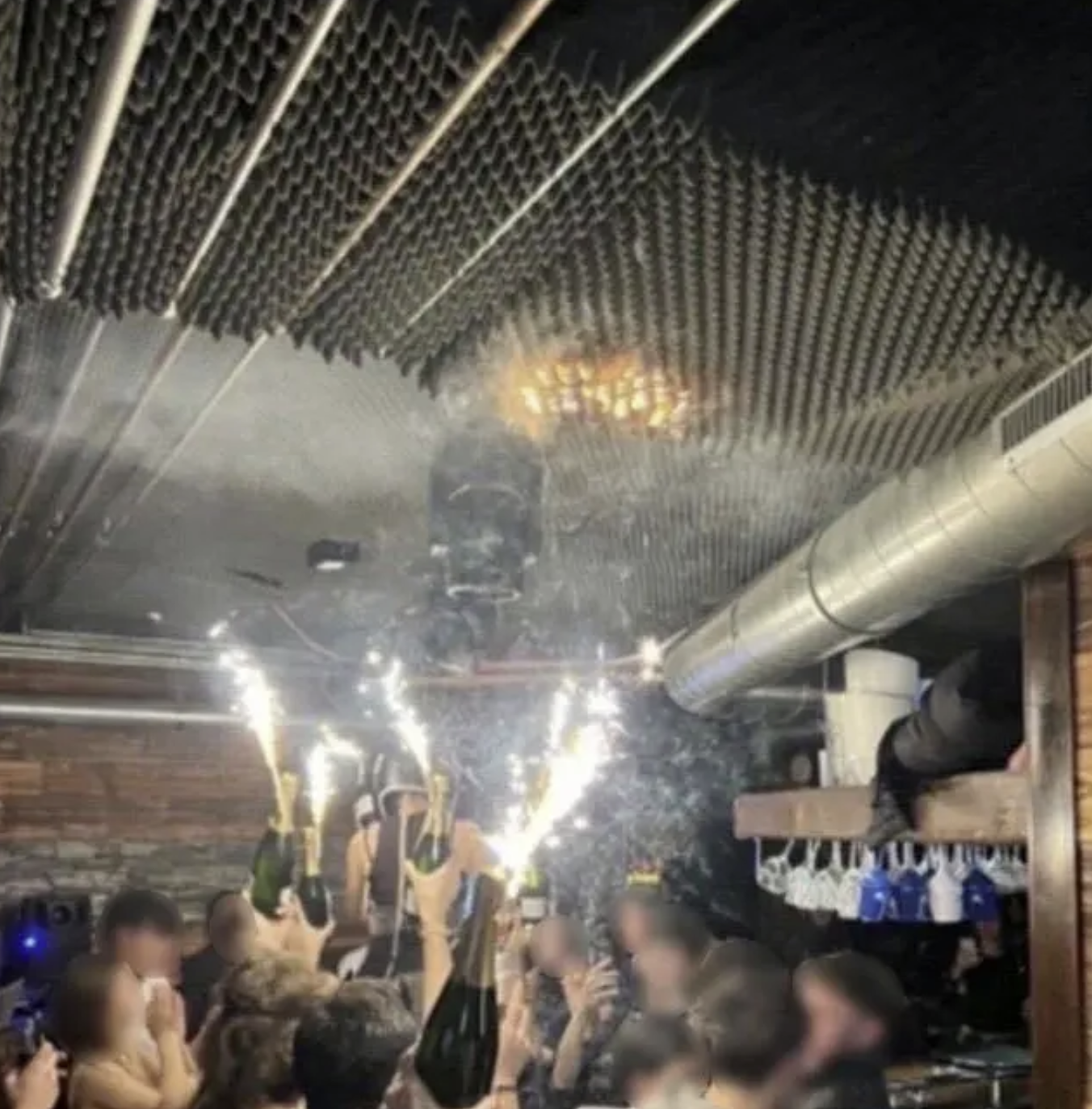 Пред пожарот што го зафати барот, гостите сè уште ја славеа Новата година. Во ноќниот клуб многу гости ја дочекаа 2026 година нарачувајќи шишиња вино. На фотографиите направени од преживеаните во барот, многу шишиња беа украсени со „прскалки“.