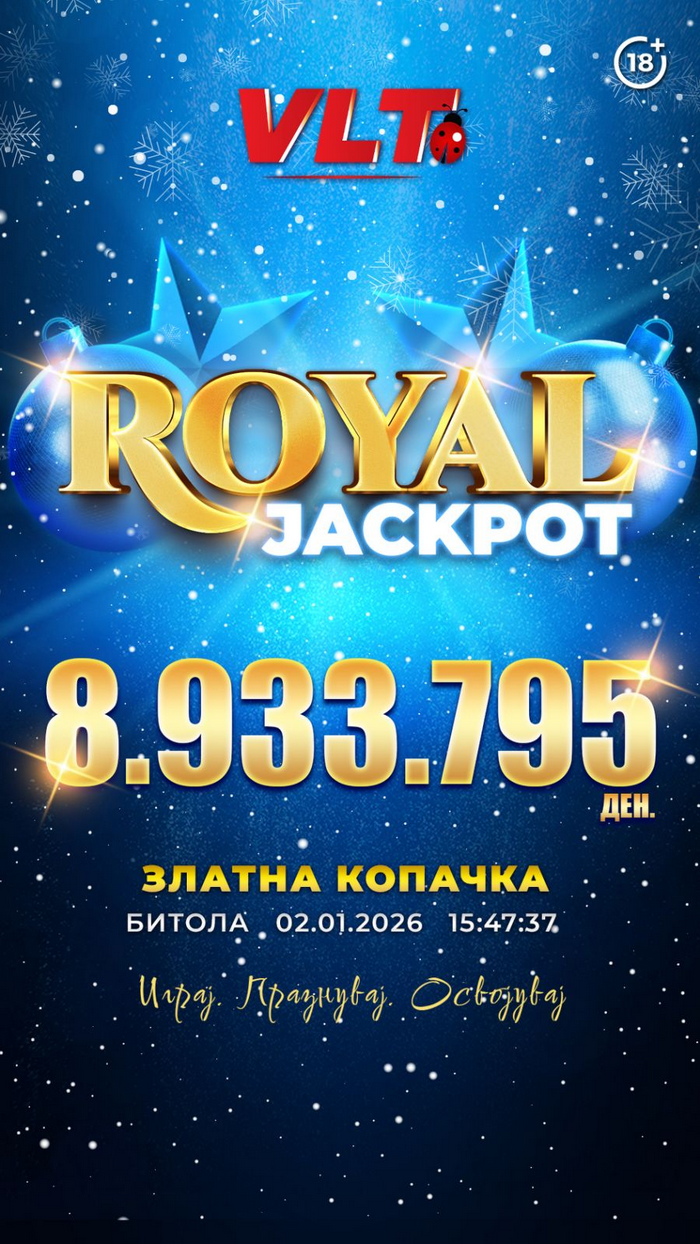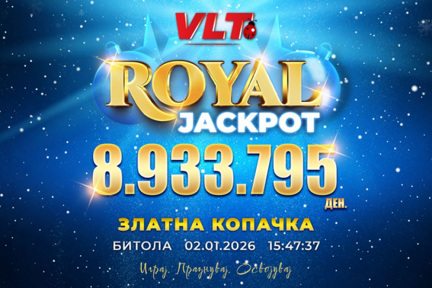 Празнична ВЛТ џекпот магија: А.В. од Битола ја започна 2026 со Ројал џекпот од 8.933.795 денари!