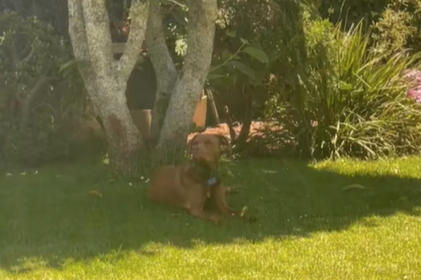 Снимката, објавена од корисничката@mozysmumma, започнува со глетка на куче кое мирно лежи во дворот.