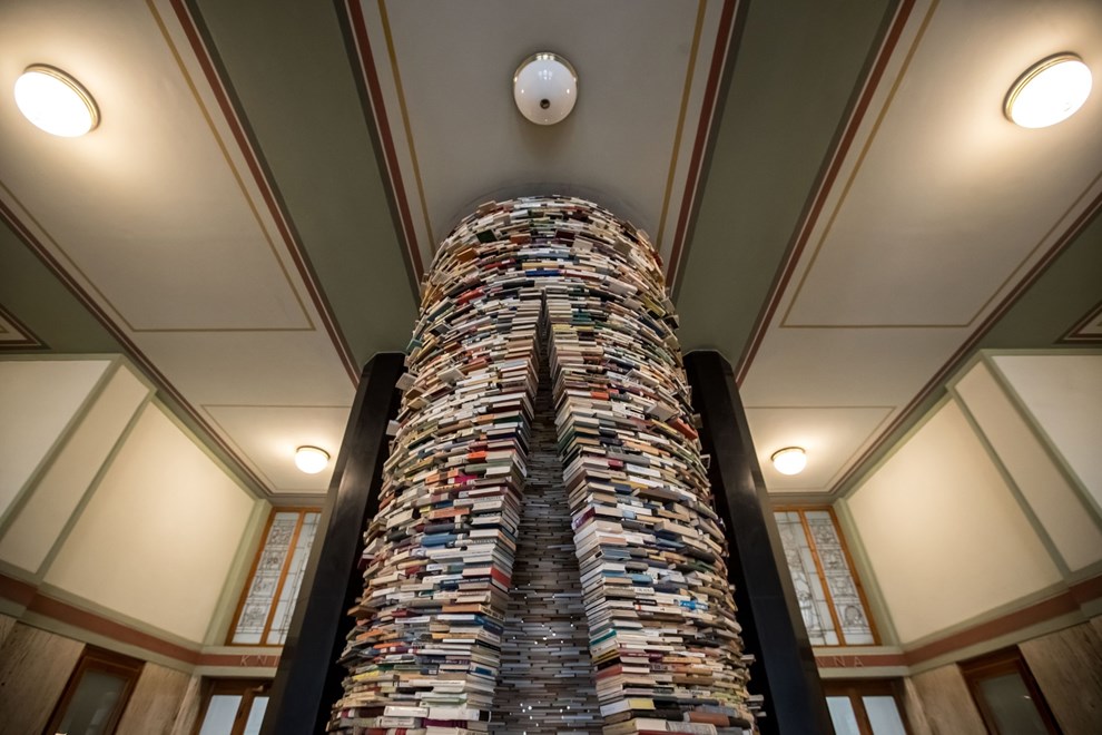„Idiom“, дело на словачкиот уметник Матеј Крен, е цилиндрична кула од 8.000 книги, со влез во форма на солза и огледала на врвот и на дното, кои создаваат впечаток на бесконечен тунел. Градската библиотека го поставила во фоајето во 1998 година, каде што делото мирно стоело до пред три години, кога одеднаш станало хит на социјалните мрежи.