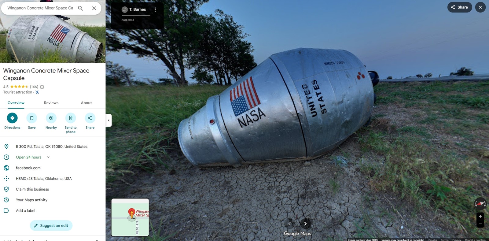 Денес, 66 години по несреќата, „Вселенската капсула од Винганон претставува една од најпрепознатливите точки за фотографирање во североисточна Оклахома. Информации за неа може да се најдат на официјалните туристички страници и на „"Google Maps", а минувачите кои не се запознаени со нејзината историја често остануваат со впечаток дека наишле на вистински остатоци од некоја вселенска мисија од времето на Студената војна.
