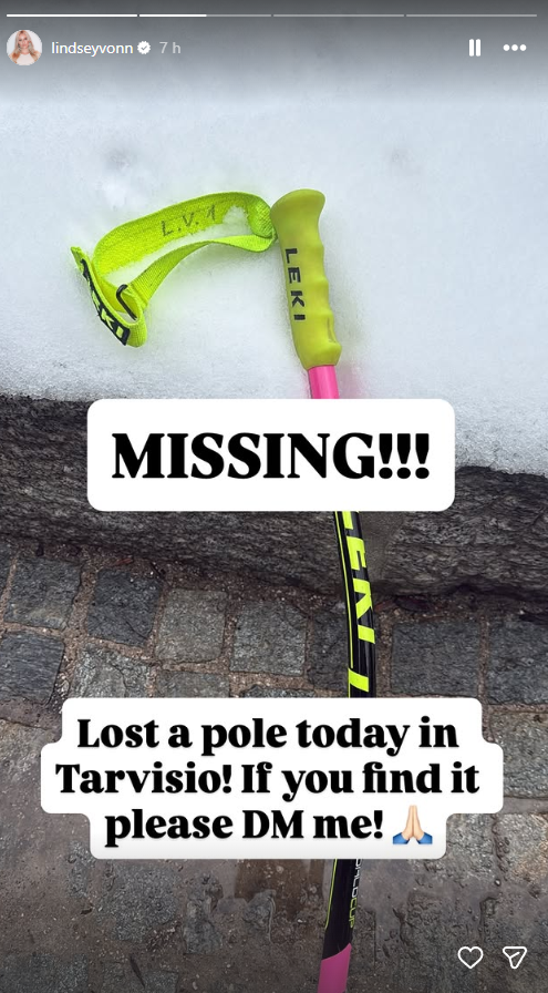 Американската скијачка Линдзи Вон (41) денеска се огласи на социјалните мрежи со необична молба, откако го изгуби својот скијачки стап во Тарвизио, Италија, во пресрет на трките од Светскиот куп овој викенд.