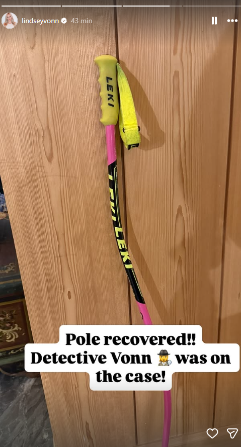 „Некој денес ми го зеде стапот на паркингот во Тарвизио. Ако сте го виделе, ве молам јавете ми“, напиша Вон на „X“, објавувајќи фотографија од соодветниот стап со нејзините иницијали на ремчето за рака.