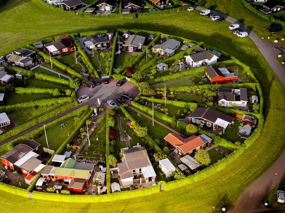 На периферијата на Копенхаген се наоѓа необичната населба Брондби, чии куќи се наоѓаат во совршени кругови опкружени со подеднакво совршено зеленило.