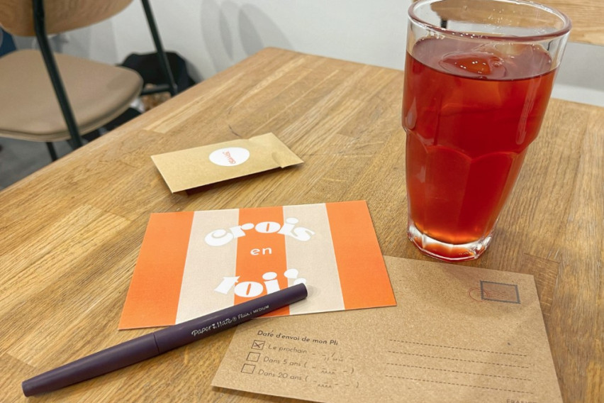 „Драга моја, јануари е 2026 година и сум во кафулето Пли во Париз. Ти го пишувам ова писмо со надеж дека сè уште се сеќаваш на овој период, кој не беше толку одамна. Има многу работи за кои се надевам дека си постигнала досега, но пред сè се надевам дека се чувствуваш смирено и во склад со себе“, е пример за првите неколку редици што посетителите на едно париско писмо-кафуле, со торта и кафе, одлучуваат да си ги напишат себеси за да ги добијат за една, пет или дваесет години.