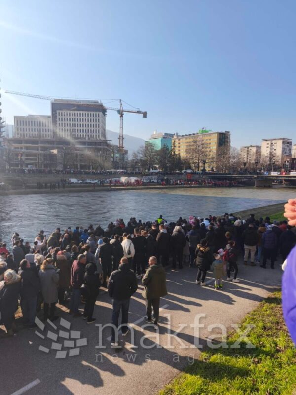 По завршување на литургијата, богојавленските литии заедно со свештенството во поворка се упатија кон мостот „Слобода“ кај хотелот „Холидеј Ин“, каде околу 12 часот поглаварот на Македонската православна црква – Охридска архиепископија, архипископот г. г. Стефан го спушти светиот и животворен крст во водите на Вардар.