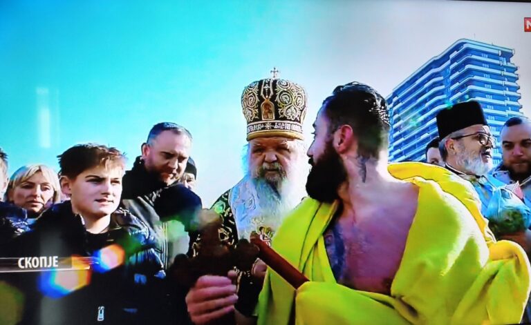 Дарко Митровиќ го фати светиот крстот што денеска, на празникот Богојавление Водици, беше положен во осветените води на Вардар.