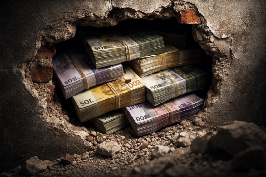 Во неа биле скриени 13 алуминиумски цилиндрични пакувања, во кои биле пронајдени вкупно 835 банкноти — 610 од по 500 евра и 225 од по 200 евра. Вкупната вредност на пронајдените пари изнесува 350.000 евра.