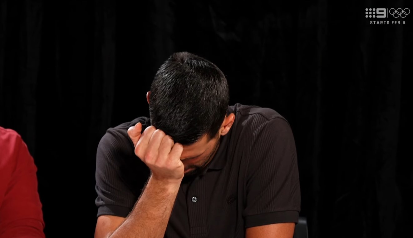 Потоа следувало прашањето што го принудило Ѓоковиќ да го покрие лицето поради згрозеност.