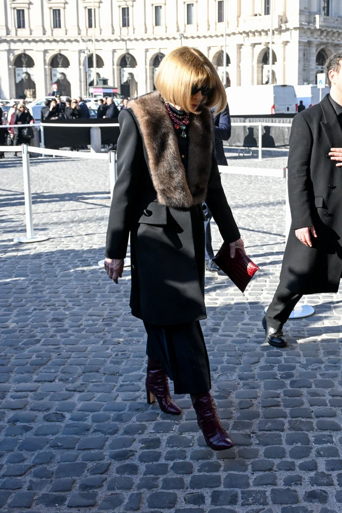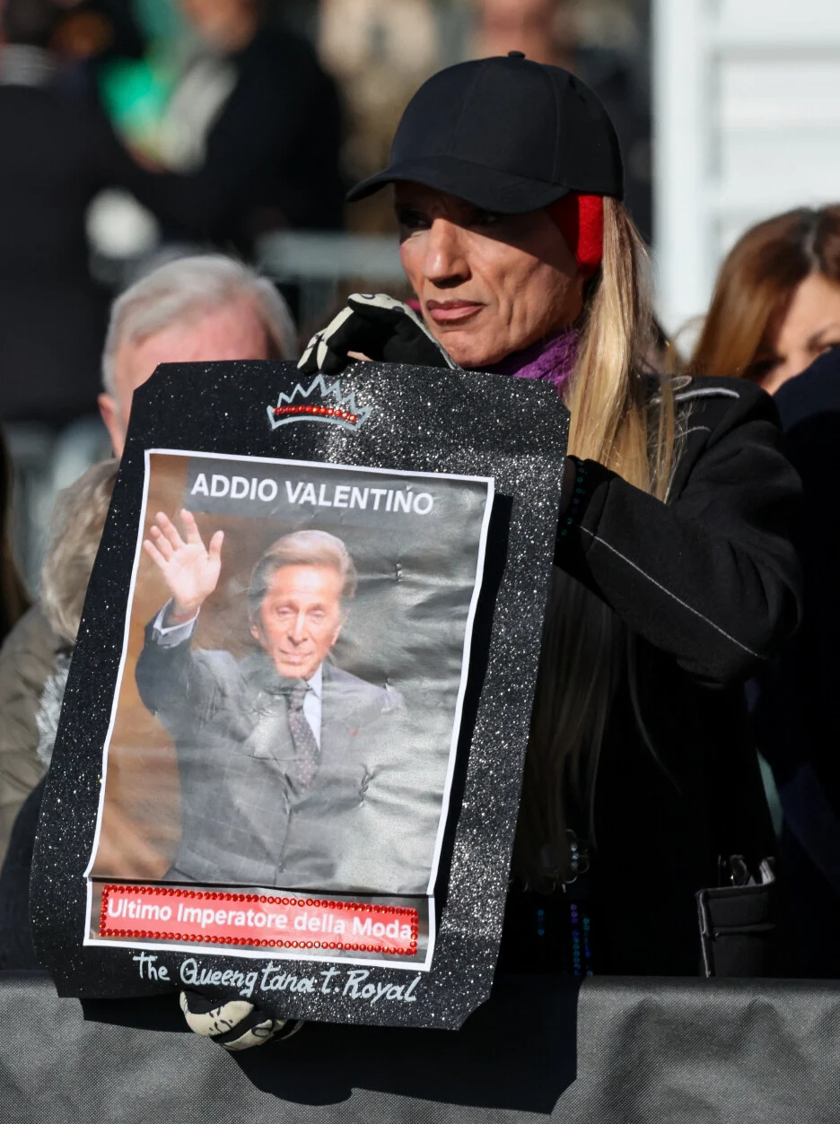 Меѓу првите пристигна Донатела Версаче, која еден ден претходно му оддаде почит на посебен начин – преку неговото наследство, Валентино црвената боја. Присутни беа и поранешниот креативен директор на неговата куќа Пјерпаоло Пичоли, како и сегашниот Алесандро Микеле. Од Њујорк пристигнаа Том Форд, Ана Винтур и Ен Хатавеј, а од Париз Наталија Водјанова со сопругот Антоан Арно.