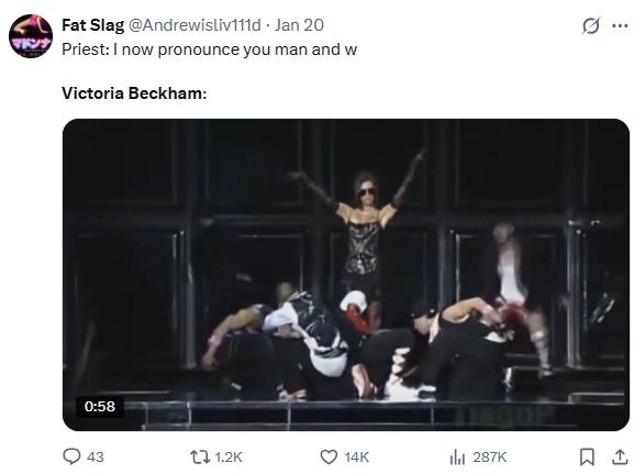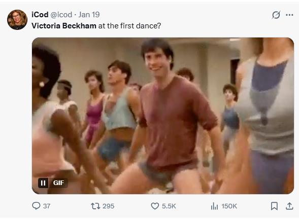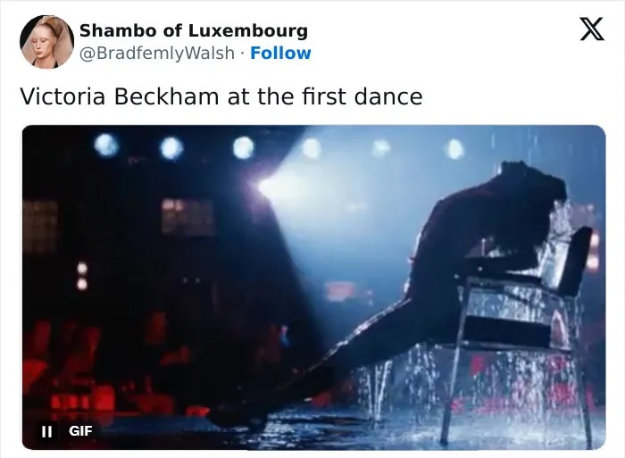 Бруклин Бекам тврди дека Викториja Бекам „му го украла“ првиот танц со Николa Пелц на венчавката и танцувала несоодветно пред сите гости. Мемињата го преплавија интернетот.