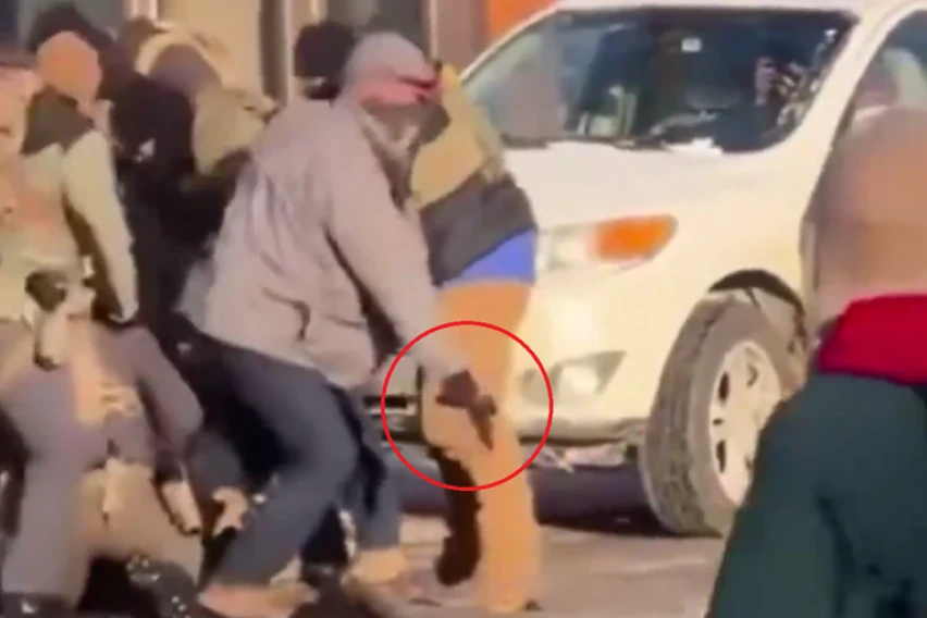Агентот што го зел пиштолот потоа се приближува и одговара: „Јас го имам пиштолот“. Ова сугерира дека агентите на ICE не биле свесни дека нивниот колега веќе го разоружил Прети.