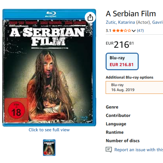А кога на тоа ќе се додаде и фактот дека повеќето од нас веќе издвојуваме парични средства за разни стриминг-услуги и дека веројатно повеќе ни немаме ДВД-уред, сосема е јасно зошто тој пазар речиси изумира – сè додека не посакате да го гледате омилениот филм или серија и не откриете дека веќе ги нема на ниту една стриминг-платформа, па гледањето практично ви е оневозможено. Во таков случај, многумина се подготвени да издвојат и неколку стотици евра за да дојдат до посакуваниот филм на „Blu-ray“ или ДВД, а на листата на најбарани се најде и контроверзниот „Српски филм“.