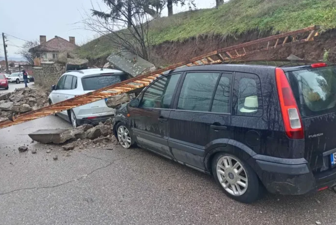 Свлечиште од земја урна дел од потпорниот ѕид на Клиничка болница-Штип, по што оградата и земјата се свлекле врз две возила со скопска и велешка регистерска табличка.
