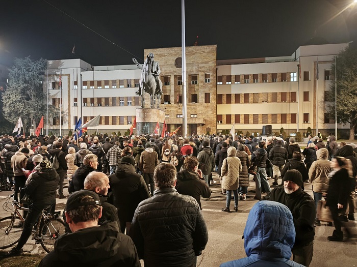 Со транспарентот „Протестираме за плата“ илјадници граѓани вечерва излегоа на улица да го поддржат протестот на Сојузот на синдикатите на Македонија и да го искажат револтот од ниските плати во земјава. Синдикалците бараат 600 евра минимална плата и зголемување по 100 евра за сите останати плати. Протестот започна пред симболот на работничката борба Работничкиот дом.