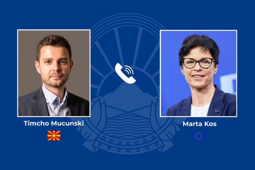 Министерот за надворешни работи и надворешна трговија, Тимчо Муцунски, попладнево оствари телефонски разговор со еврокомесарката за проширување, Марта Кос.