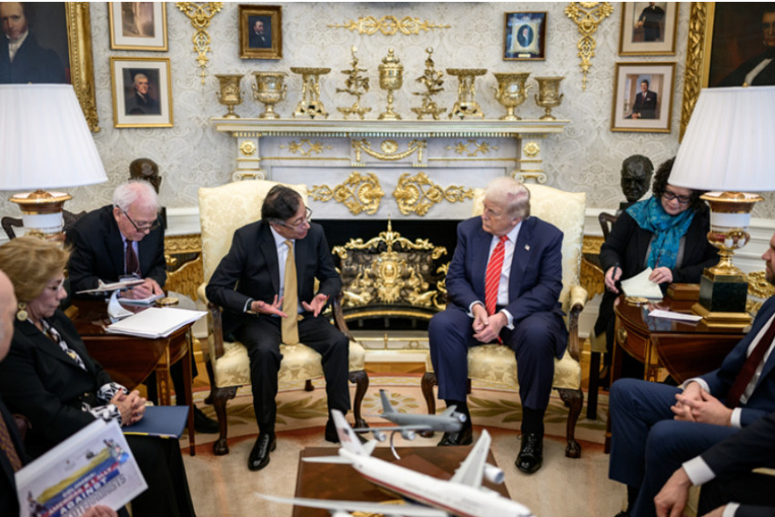 Белата куќа објави нивна фотографија од Овалната соба, на која се гледа и потпретседателот Џ.Д. Венс, и хартија во рацете на еден од помошниците на Петро на која пишува „КОЛУМБИЈА: Сојузник на Америка против нарко-терористите“.
