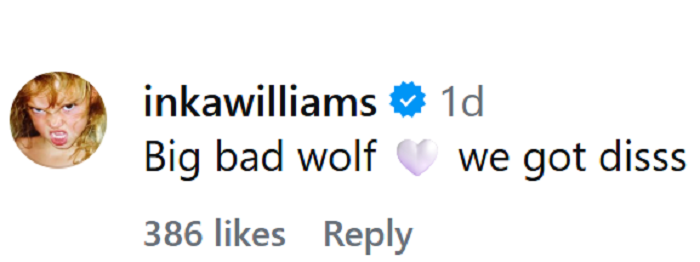 Под објавата, поддршка му даде и неговата девојка, манекенката Инка Вилијамс, која напиша: „Голем лош волку (емоџи со срце), ќе го пребродиме ова“.
