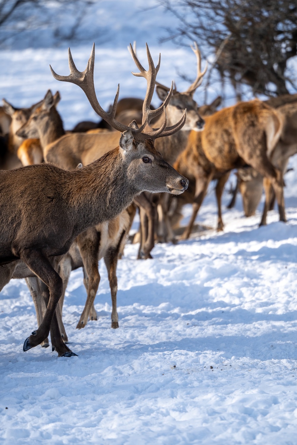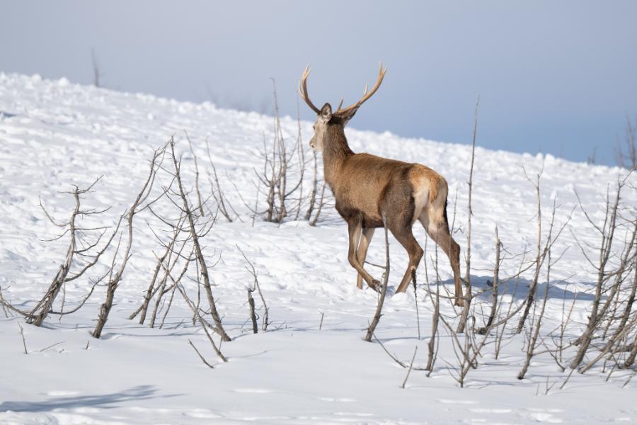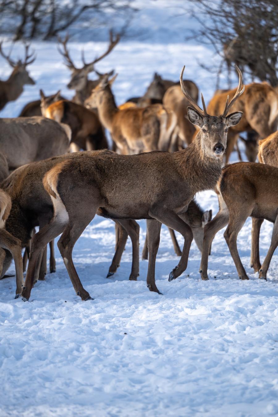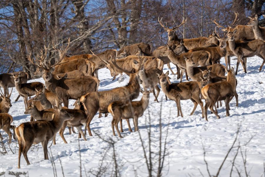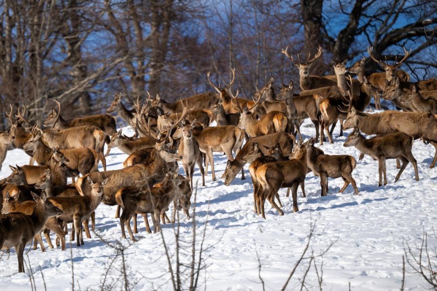 Тој сподели серија фотографии на кои се прикажани елените сместени во репродуктивниот центар за европски елен, додека спокојно се движат низ снежните предели на Галичица. Сцените, кои наликуваат на илустрации од бајка, ја нагласуваат природната рамнотежа меѓу дивиот свет и зимската планинска околина.