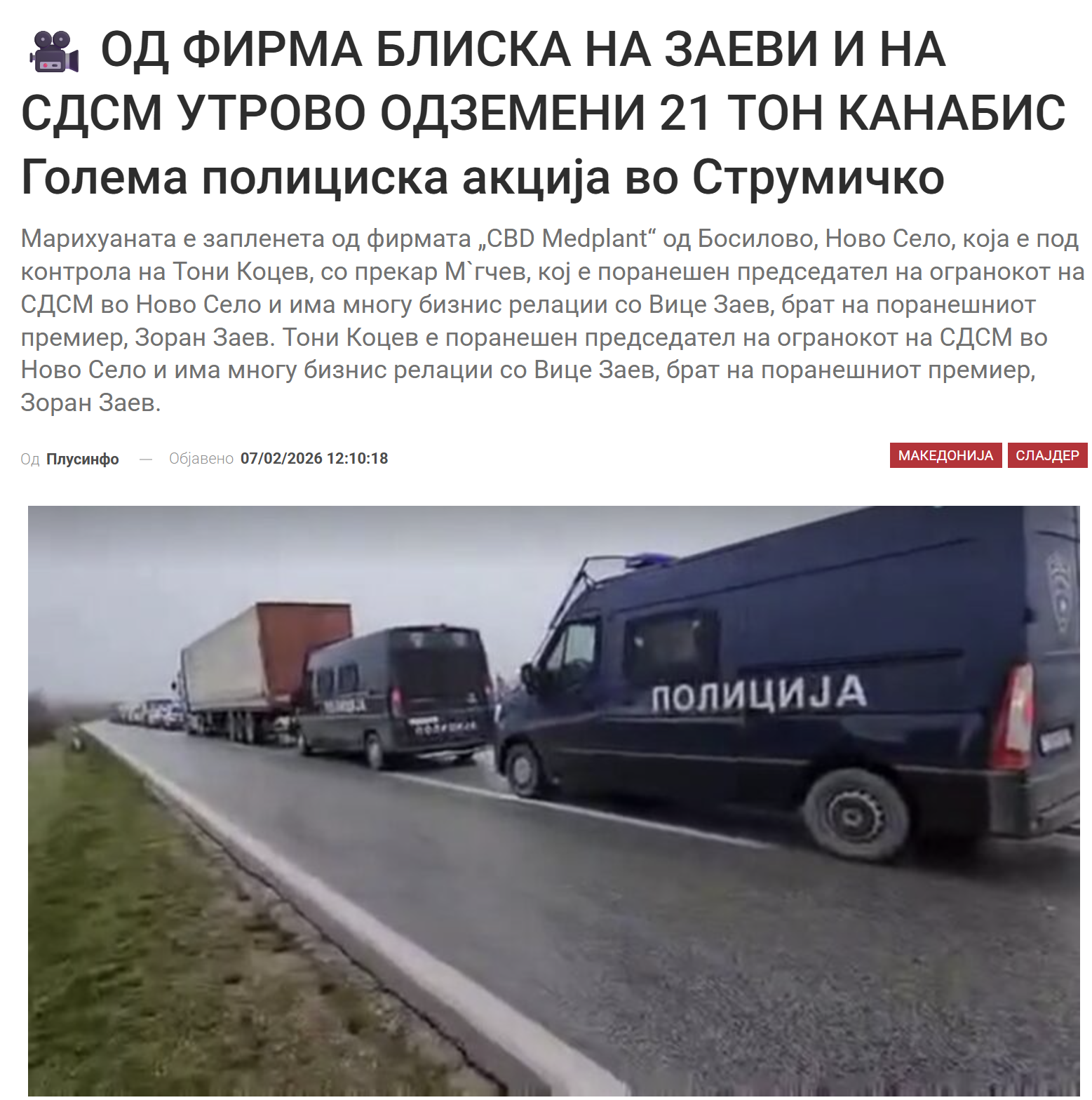 [ВИДЕО] - Историски удар на полицијата: над 27 тони марихуана паднаа во Македонија. Се споменува името на брат на поранешен премиер