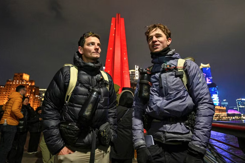 Двајца француски авантуристи го завршиле своето епско патување од нивниот роден град до Шангај по речиси година и пол патување, за време на кое поминале низ 16 земји речиси целосно пеш.