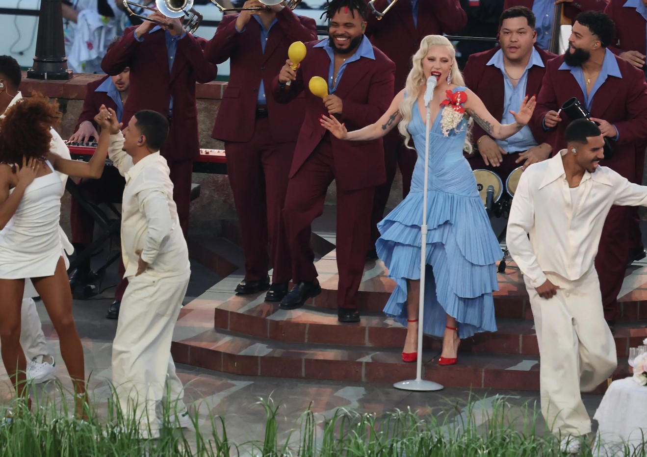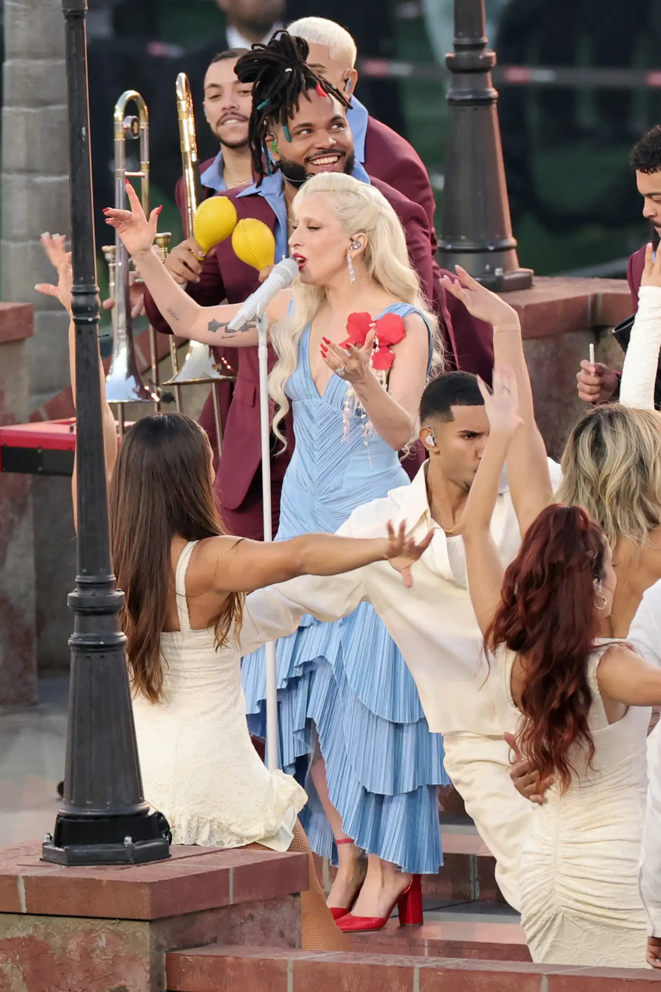 Таа го извела својот познат хит „Die with a Smile“ во салса аранжман, а целиот настап бил проследен со нејзиното впечатливо модно издание.