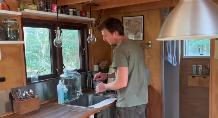 Не крие дека самодоволноста не е лесна, но му дава силно чувство на смисла и контрола над својот живот. Една од најголемите промени во неговата секојдневие се однесува на користењето на вода. Не се потпира на класичен водовод, туку пие, готви и се капе со дождовница. Водата ја собира, ја филтрира и дополнително ја прочистува пред употреба, а целиот систем го дизајнирал така што е безбеден и одржлив.