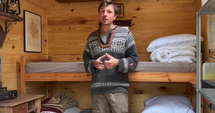 Без луксуз, но со јасна цел: да живее што поедноставно и поефективно. Неговата нова куќа е мала, но функционална. Дрвената куќичка на тркала има сè основно — простор за спиење, мал кујнски агол и печка на дрва. Вели дека повеќе од тоа не му е потребно. Наместо хипотека и сметки, сега има природа, мир и слобода што порано не ја познавал.