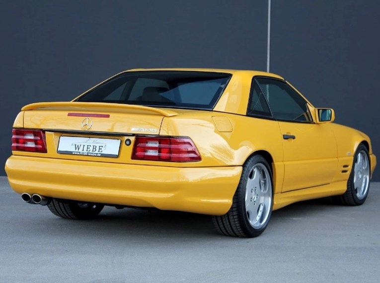 Станува збор за „Mercedes-Benz SL500" од 1997 година, и тоа во ретката нијанса "Yellowstone". Тоа е онаа специфична жолта боја што повеќе би ја очекувале на „Lamborghini“ отколку на воздржан германски GT модел. Ова е вистински раритет — според продавачот, само 24 примероци биле испорачани во оваа боја. Токму комбинацијата од реткост и беспрекорна состојба ја турка цената високо.