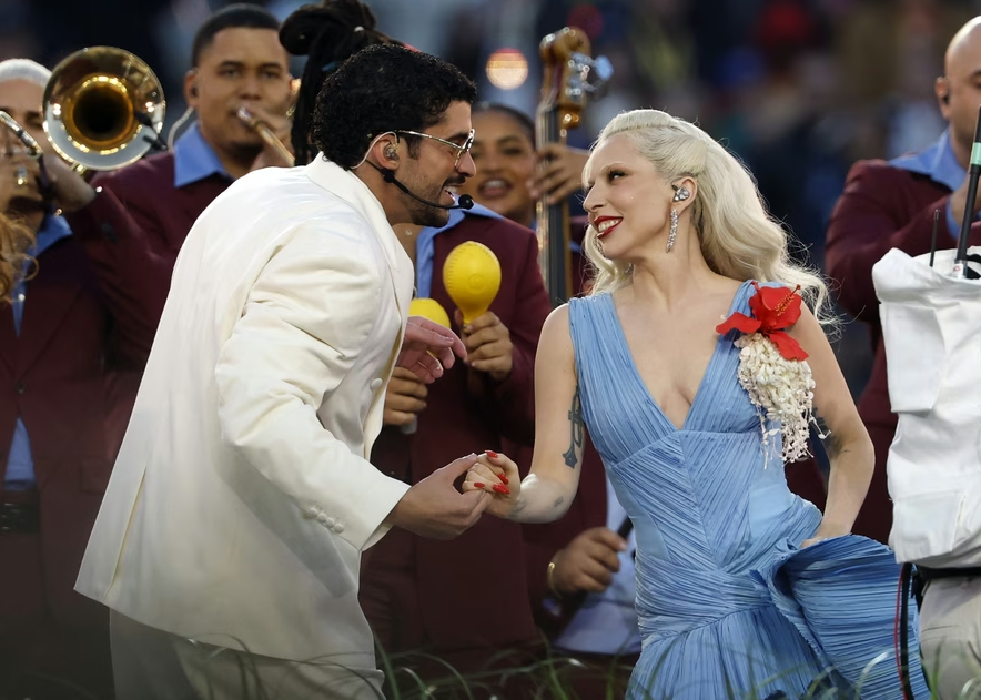 Еден од најголемите шокови на вечерта се случи кога Лејди Гага одеднаш се појави на сцената. Нивниот заеднички настап веднаш ги запали социјалните мрежи и предизвика лавина од коментари. Лејди Гага, која неодамна ја освои наградата Греми за најдобар поп албум, се појави во елегантен син фустан и ја изведе песната „Die With A Smile“ во салса аранжман, по што таа и Бед Бани танцуваа пред десетици илјади луѓе на стадионот. Латино енергијата беше дополнително засилена кога Рики Мартин им се придружи на сцената.