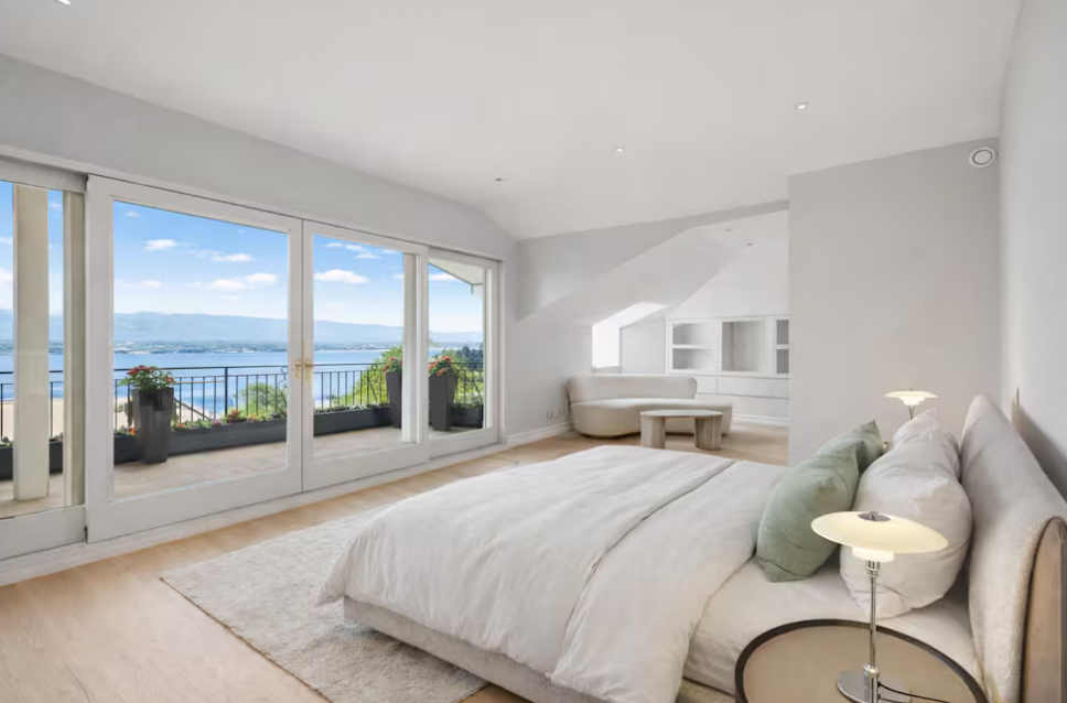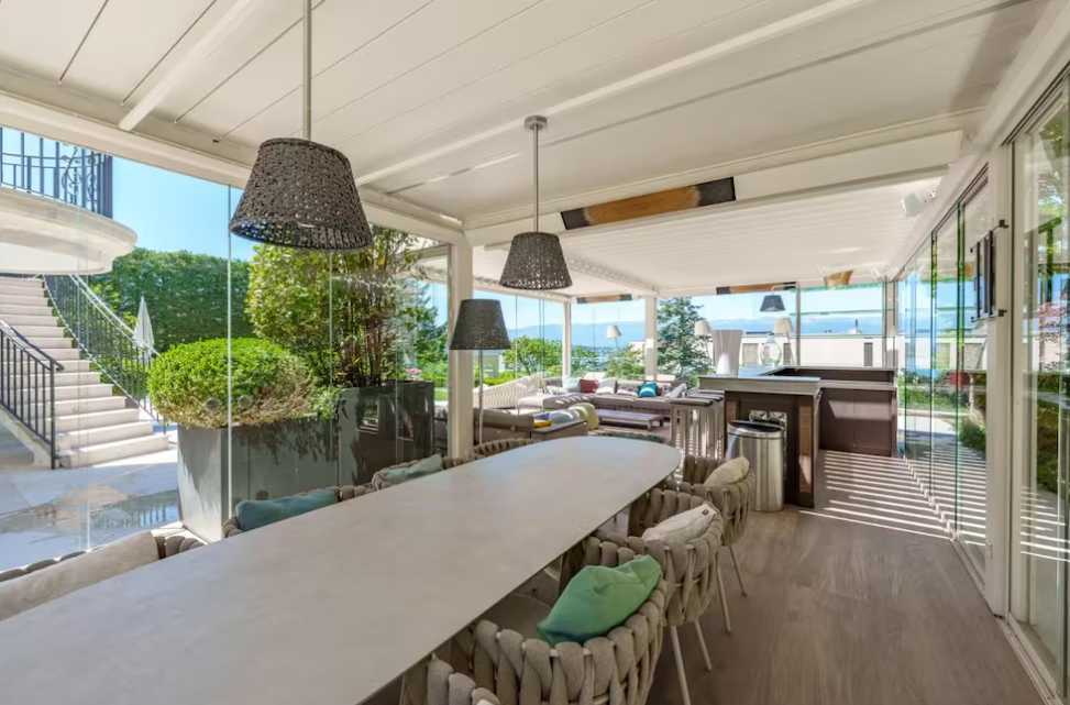 Овојпат станува збор за луксузна вила со спектакуларен поглед кон Женевското езеро и планината Јура. Таков комфор, има и своја цена – вилата е огласена на повеќе платформи по цена од 15 милиони швајцарски франци.