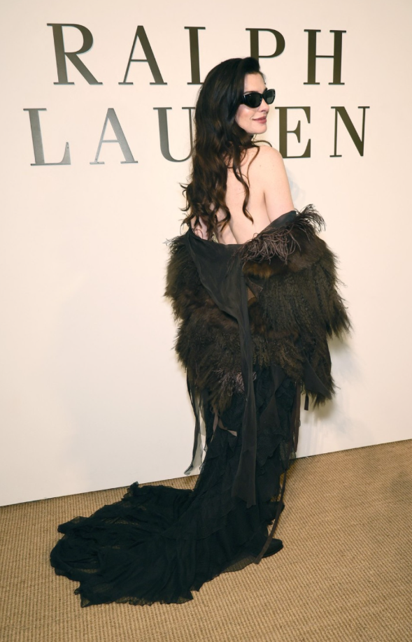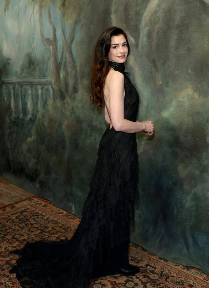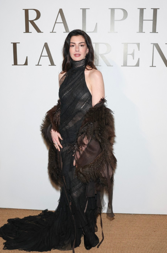 Ен Хатавеј неодамна присуствувала на ревијата од брендот „Ralph Lauren“ која се одржала во состав со модната недела во Њујорк. За таа прилика актерката одлучила да носи креација која го спојува чистиот сексапил и мрачниот гламур.