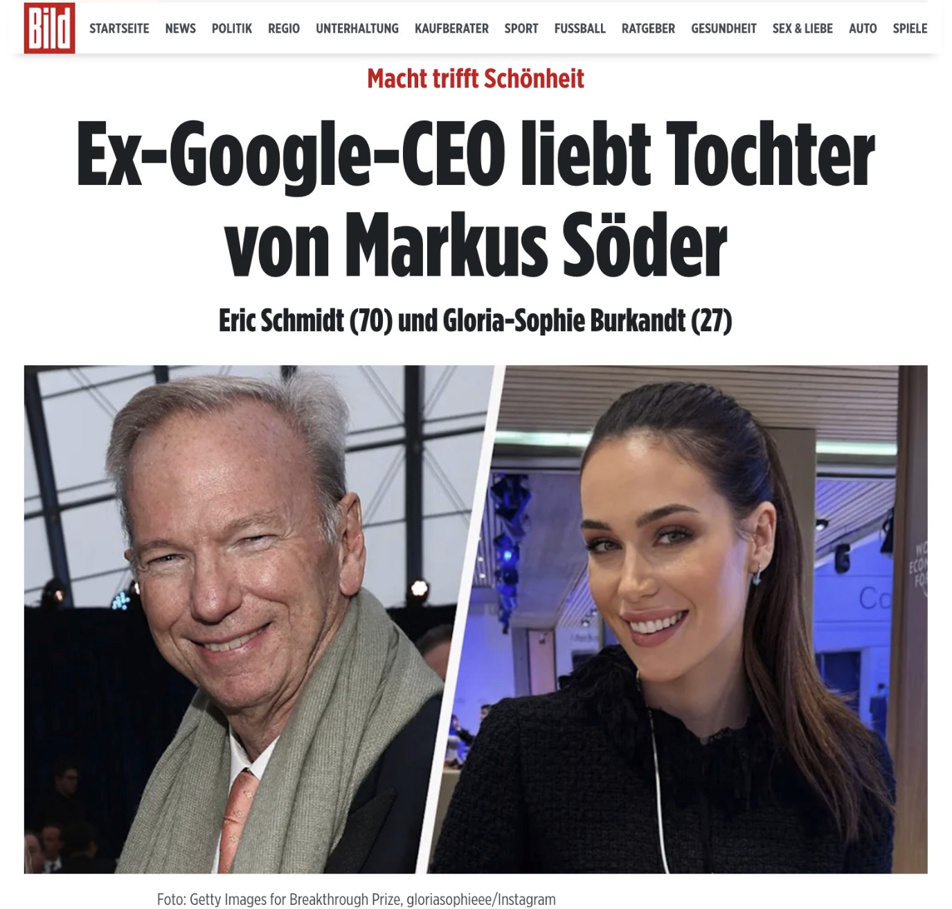 „Глорија Софи, која е ќерка на баварскиот премиер Маркус Зедер му е повеќе од пријателка на поранешниот извршен директор на Гугл“, тврди Билд, додавајќи дека таа има „импресивна заднина како економистка, манекенка и авторка“.