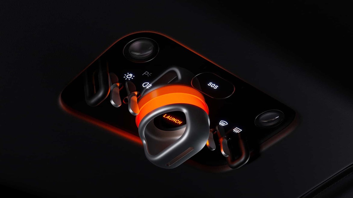 Централниот екран може да се ротира кон возачот или совозачот за полесно користење. Во долниот дел има физички копчиња за поставките на вентилацијата. Посебност е отвор во екранот што открива механички модул со четири режими: часовник, хронограф, компас и „launch control“.