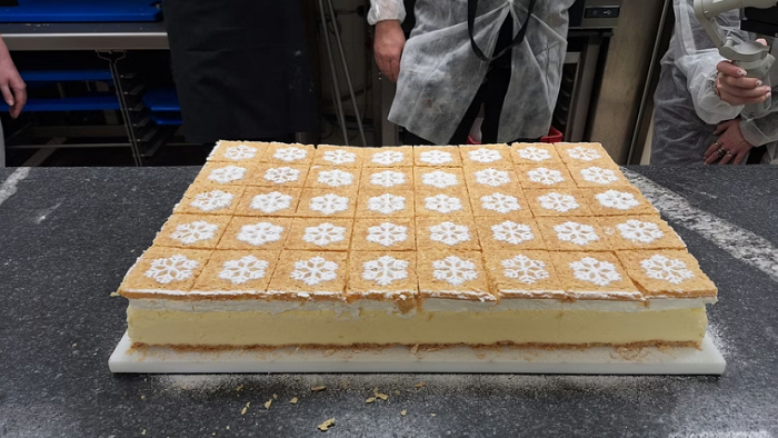 „Бледската кремпита е славен словенечки колач од лиснато тесто, полнет со ванила-крем, но и со слој шлаг, прецизно исечена на квадрати 7x7.