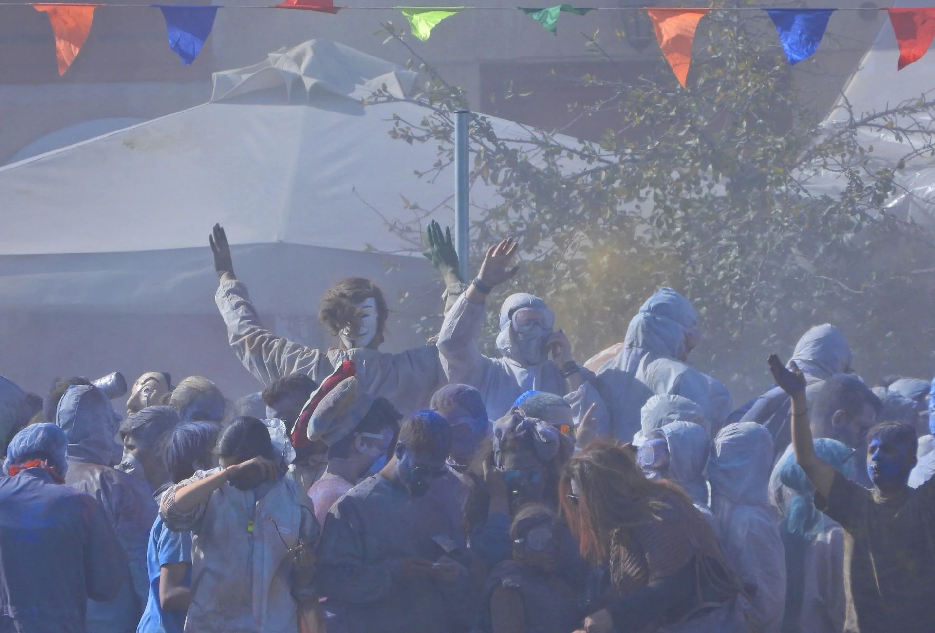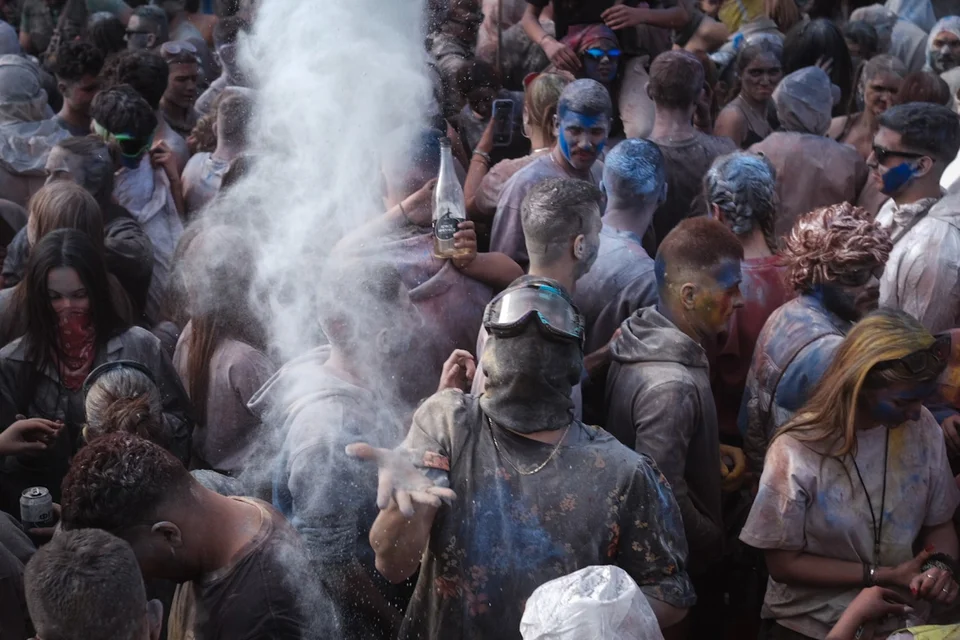 Градот буквално исчезнува во облак од брашно обоено во различни бои