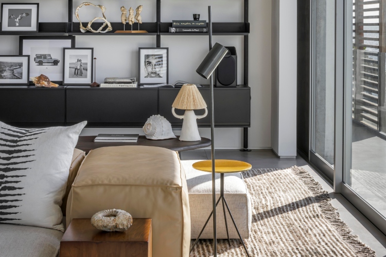 Спиралните скали обложени се со ладен, сив микроцемент којшто ја спојува внатрешноста со надворешниот свет, додека пак грубиот бетонски екстериер се вклопува со внатрешниот луксуз – во библиотеката, во спалната соба, во металните отпечатоци на ѕидовите, па така материјалите добиваат нова димензија, приказна во приказна за траењето и текстурата.