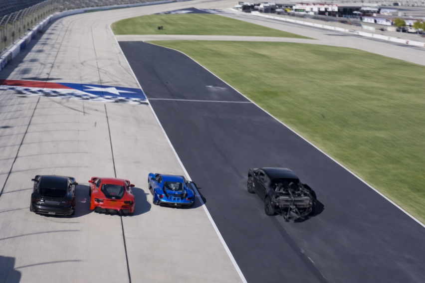 На прв поглед изгледа како класична трка на егзотични суперавтомобили: на стартната линија се „Ferrari F8“, „Ford GT“, „Porsche Taycan“, „Dodge Challenger SRT Hellcat“ и „Aston Martin DBS Superleggera“.