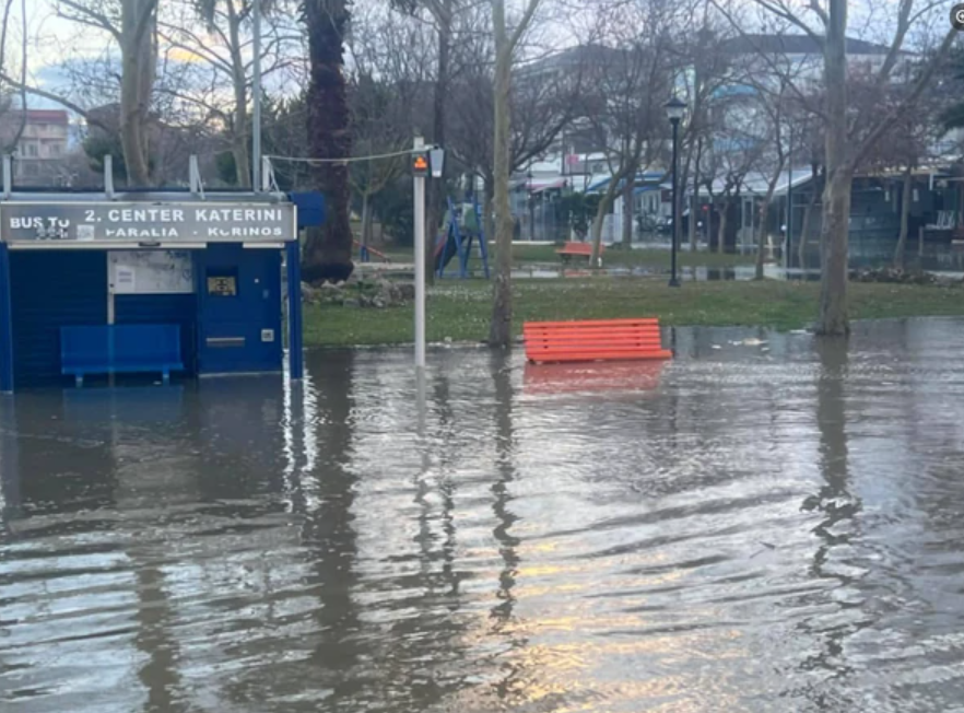 Поради обилните дождови и зголемување на нивото на морето, дошло до излевање и запирање на сообраќајот во многу делови од Грција, како Олимпискиот регион, Халкидики...