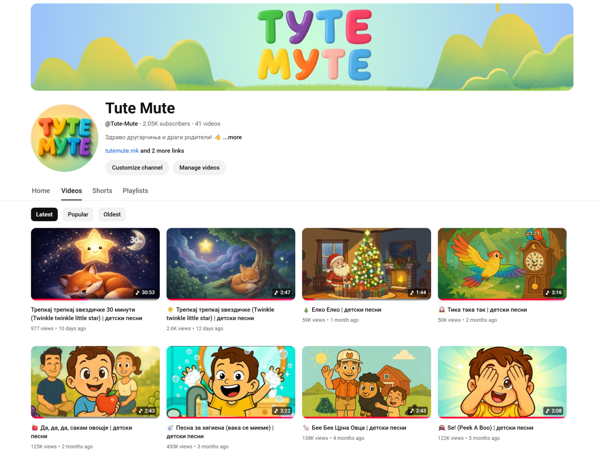 Македонскиот YouTube простор доби нов квалитетен канал за деца – „Туте Муте“, кој нуди безбедна, едукативна и забавна содржина на мајчин јазик. Со модерна 2D анимација, познати детски песни и интерактивни приказни, каналот им помага на најмладите да учат здрави навики, семејни вредности и да го засакаат македонскиот јазик. Сите видеа се бесплатни на YouTube, а тимот најавува редовни нови содржини и проширување на програмата.